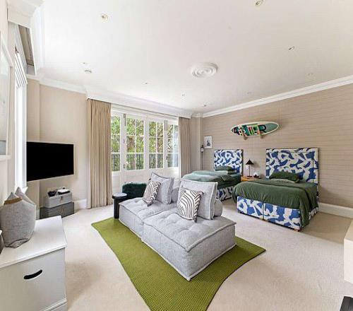顶层则是第五间卧室,配有相邻的浴室和更衣室,此外还有一间娱乐室和健身房。