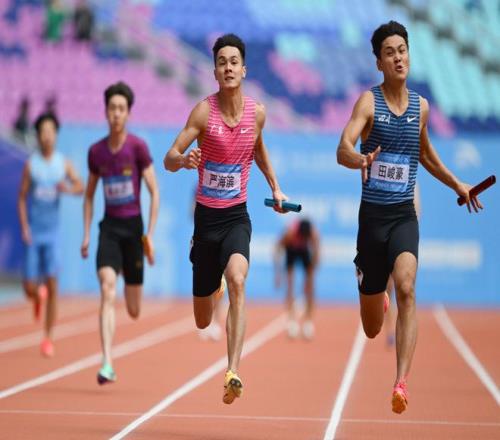 11月20日 十五运田径男子4×100米接力预赛 广东队陈嘉浩、刘洪熙、 丘智贤、严海滨出战 拿下小组第三 晋级决赛