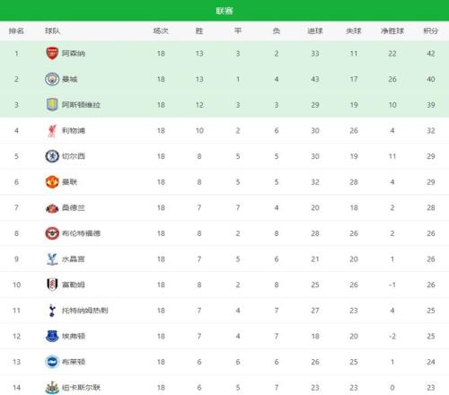 从积分榜整体形势来看,本轮比赛对英超格局的影响并不小。阿森纳以42分继续领跑,但领先优势并不稳固。曼城以40分紧追其后,阿斯顿维拉也拿到39分,前三名分差极小,争冠呈现出明显的三强并立态势。 争四集团的竞争同样激烈。利物浦近期状态回暖,一波联赛三连胜让他们悄然攀升至第4位。切尔西和曼联同积29分,分列第5和第6,距离欧冠区始终只有一步之遥。桑德兰紧随其后,28分排名第7,依然是最具冲击力的搅局者。整体来看,英超第18轮过后,无论是争冠还是争四,形势都愈发胶着。强队不再稳如泰山,黑马也开始承受持续作战带来的压力。 |