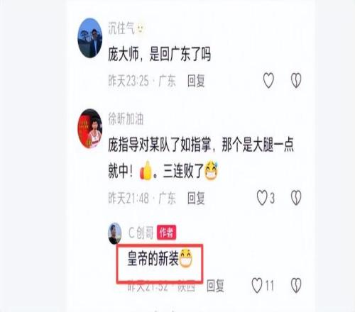 赛后有球迷与原山西顾问团队的庞启蒙交流,有人问:庞指导对某队了如指掌,那个是大腿一点就中!三连败了。庞启蒙颇有嘲讽意味地说:皇帝的新装。这很好领会,"新装"代表着那些看似美好、华丽,实则虚无的事物,就像是人们为了满足自己的虚荣心而追求的一些没有实际价值的东西。皇帝为了这根本不存在的"新装"大张旗鼓地游行,大臣们明明看不到却不敢承认。也许庞启蒙也想表达这样的意思:我们上季好好给你们当顾问,提出的战术没有延用下去,以为学到手了,可是离开我们还是不行。不少山西球迷,对没有续约春哥顾问团队感到遗憾。对此,你们怎么看? |