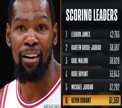 杜兰特总得分超诺维茨基升第6本赛季有望超乔丹