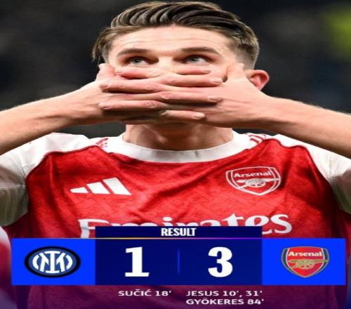 欧冠联赛阶段第7轮焦点战在梅阿查球场如期上演,意甲领头羊国际米兰坐镇主场迎战阿森纳,最终球队1比3不敌对手,赛后阿森纳延续本赛季欧冠赛场的不败战绩,至今7轮赛事取得7全胜战绩,期间打进20球,失2球,积21分位居欧冠积分榜第一。皇马积15分位居第二,拜仁如果本轮赢球可以升至第二位。 阿森纳拿下关键战的功臣是热苏斯,后者梅开二度主宰上半场,约克雷斯下半场轰出世界波锁定胜局,枪手以7战全胜的完美战绩续写传奇,而国米则遭遇欧冠3连败,在主场吞下失利苦果,欧冠晋级形势愈发严峻。国米7轮赛事4胜3负,打进13球,丢了7球,目前只积12分排名第9位。 国米虽稳居意甲榜首,但近期欧冠状态低迷,此前两连败让他们陷入晋级被动,此役两队首发阵容均尽遣主力,阿森纳沿用熟悉的进攻体系,热苏斯突前领衔锋线,埃泽、萨卡两翼策应;国米则以劳塔罗、图拉姆搭档锋线,苏契奇坐镇中场,力求通过强硬反击撕开对手防线,但是结果却暴露了蓝黑军团的无力感。 比赛开场仅1分钟,阿森纳的斯凯利禁区内觅得良机起脚攻门被封堵,弧顶处梅里诺跟进补射再度被挡,枪手的闪电突袭给国米后防线敲响警钟。第4分钟,萨卡右路内切后大禁区外远射,皮球击中巴斯托尼后发生折射,索默反应迅速将球没收,化解了对手的又一次威胁。 第10分钟,阿森纳前场打出流畅配合,埃泽送出精准直塞,热苏斯背身巧妙做球,梅里诺得球后迅速分给前插的斯凯利,后者沿底线突破后送出横传,廷伯禁区内顺势打门,门前的热苏斯反应极快,轻轻一蹭改变皮球线路,索默鞭长莫及,阿森纳1-0率先打破僵局,收获本赛季欧冠第20粒进球。球队从后场到前场的多脚传递一气呵成,热苏斯的门前嗅觉很到位。